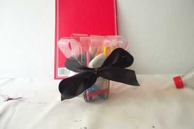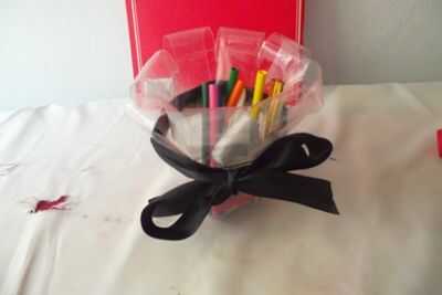 Tapamos el alambre con un bonito lazo de cualquier color y ya tenemos nuestro bonito jarrón, lapicero o lo queráis. Ya veis fácil de hacer y con pocos materiales. =)