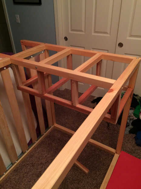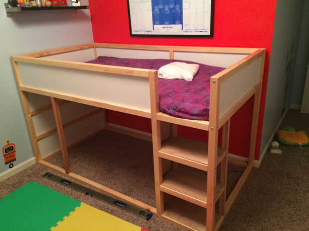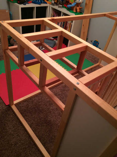 Coloque la cama totalmente construida de lado para que sea más fácil trabajar con.
