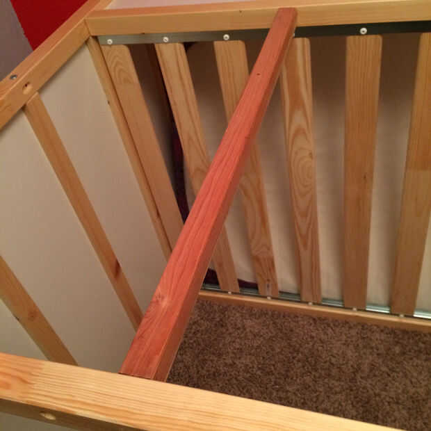 Ahora agarra el resto de 1 X 1 y pasar al otro lado de la cama. A continuación, medida/cortado a la medida y construir un marco para sujetar a la escalera. Esto le dará la base necesaria para agregar la madera contrachapada y crear la estantería de la escalera. Otra vez, fije con tornillos para madera.