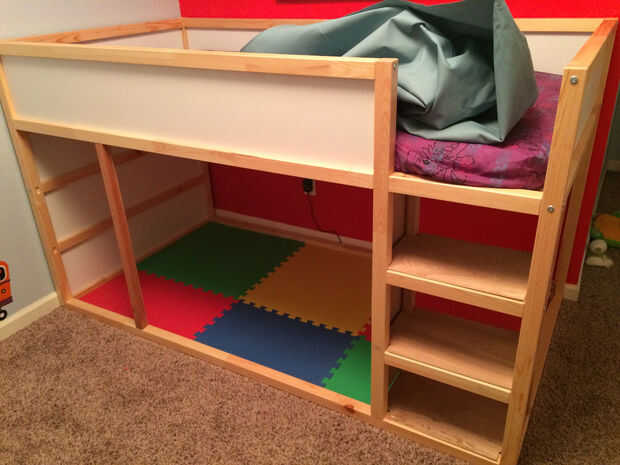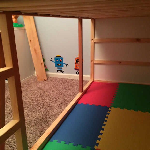 Esta parte es bastante fácil. Las piezas de espuma van juntos como un rompecabezas. Ponerlos juntos, deslice debajo de la cama y luego usar un cuchillo del Exacto para cortar para caber dentro de la estructura.