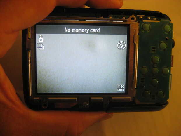 Encender la cámara. La lente debe extenderse y debe iluminar la pantalla LCD. Probar el foco. Esperemos que todo funciona! Si no, volver sobre sus pasos un poco; asegurándose de que todo está en orden.