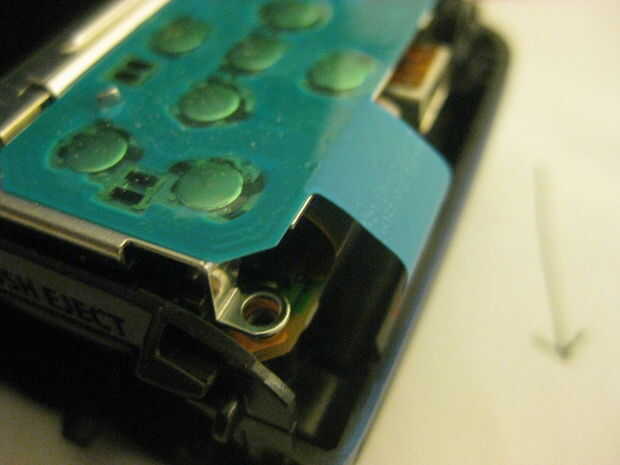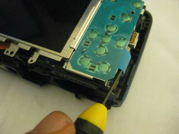 La mejor manera de lograr esto es por desplazamiento del eje de un derecho del destornillador fino por debajo de la ficha del cable de cinta, entre la pestaña y el resto de la cámara. Entonces puede utilizar el destornillador para sacar el cable de cinta de su "toma".