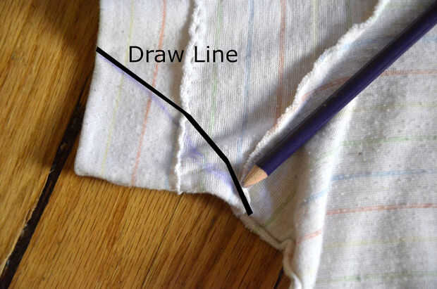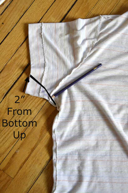 A partir de la axila, dibuje una línea bajo la manga a 2" por encima del extremo de la manga.