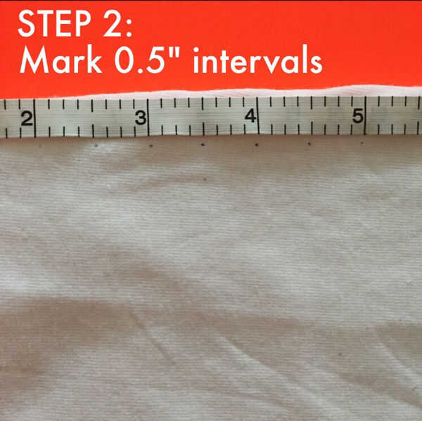 Para hacer el hilado, debe cortar la parte restante de la camiseta en tiras. Las tiras de la más grandes, el más grueso el hilo. Usted puede cortar en algún lugar entre 0.5"- 1" todo una vez que hayas elegido el tamaño de las tiras, utilice un lápiz para marcar los puntos débilmente.