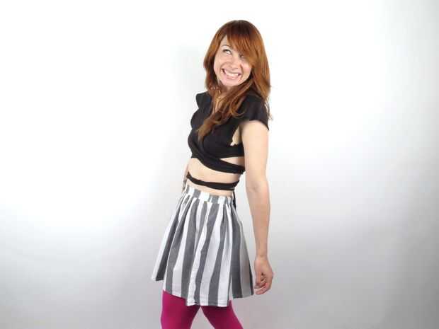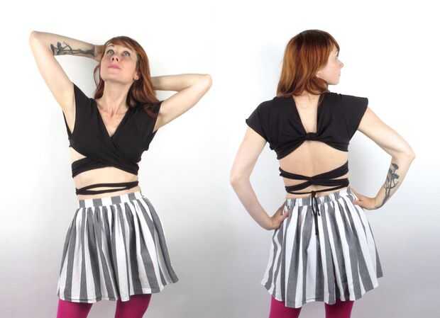 Mod una camiseta vieja aburrida en una divertida había recortada camiseta de abrigo con estos sencillos pasos. Todo lo que necesita es unas tijeras y las puntadas y el resultado es un top de verano perfecto para fiestas, yoga o desgaste con una linda falda.