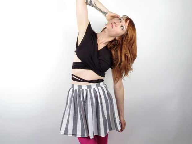 Ahora par tu Linda creación con diferentes trajes y tratar de atar de diferentes formas. Mina como con una falda de cintura alta, pero creo que también sería muy bien con pantalones de yoga, como parte de un conjunto de fiesta, o incluso sobre un sujetador de bikini o deportes.