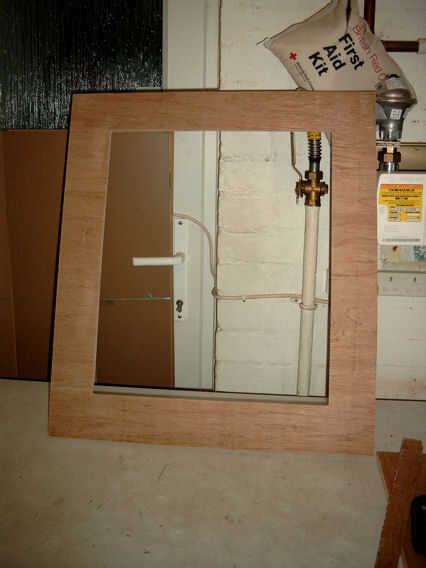 El siguiente trabajo fue saber simplemente cómo queríamos que cuidar, algunos pensaban que decidimos hacer un marco para todo el espacio con madera contrachapada de 3/8" y construir un circuito abierto con caja con una espejeada detrás que se deslice en el vacío en la parte posterior de la misma.