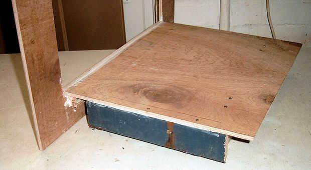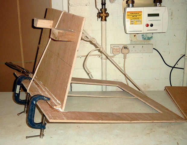 Siguiendo algunas medidas más montar un listón a cada lado de la base de algunas maderas que queda de un antiguo banco del jardín (después de todo nunca se verá y guarda las cosas buenas.
