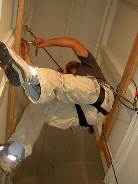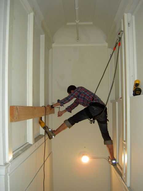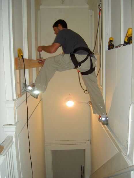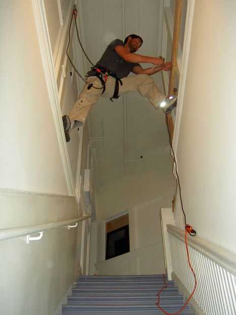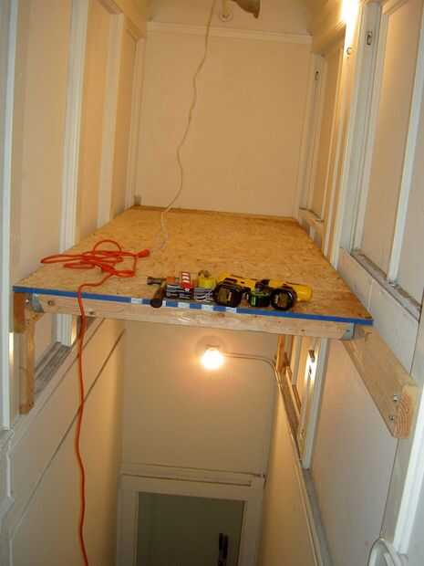 Yo seguí mirando el espacio por encima de la escalera que desciende hacia la puerta y pensando ¡ sólo mira en espacio desperdiciado todo eso! Un día que decidimos hacer uso de ella y construir un loft.