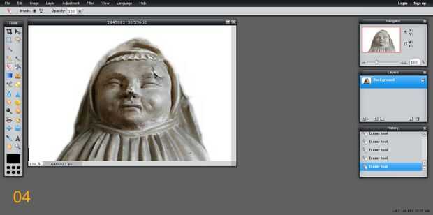 Claro el fondo utilizando el cultivo como herramienta de goma para conseguir un fondo blanco con estatua en el centro.