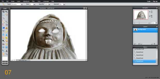 Usando la herramienta lápiz, hacer los dientes de la estatua, cada uno a partir de labios.