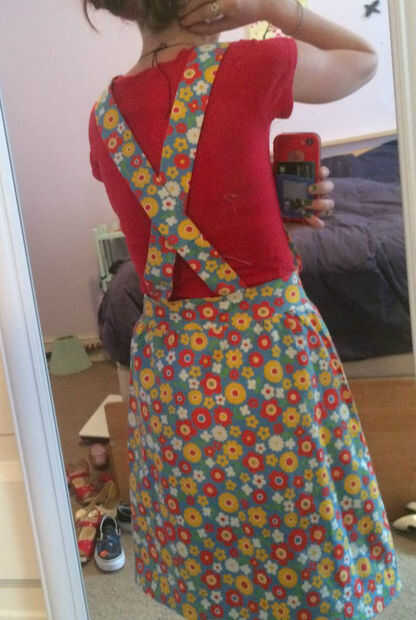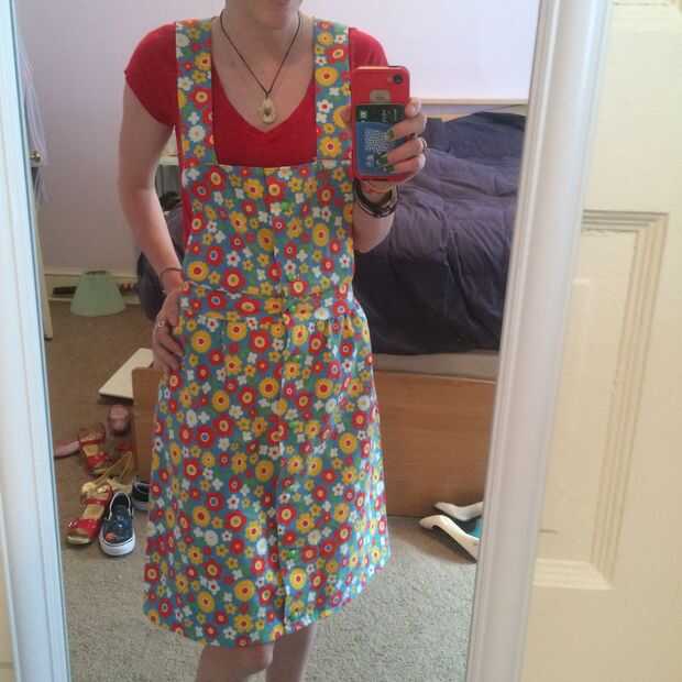 convertir una falda de algodón lindo en una túnica de delantal de estilo shabby chic, slouchy, bebé muñeca que puede ser usada sobre camisetas, con los pantalones vaqueros, o simplemente como un delantal.No hay necesidad de un patrón. Es una simple m