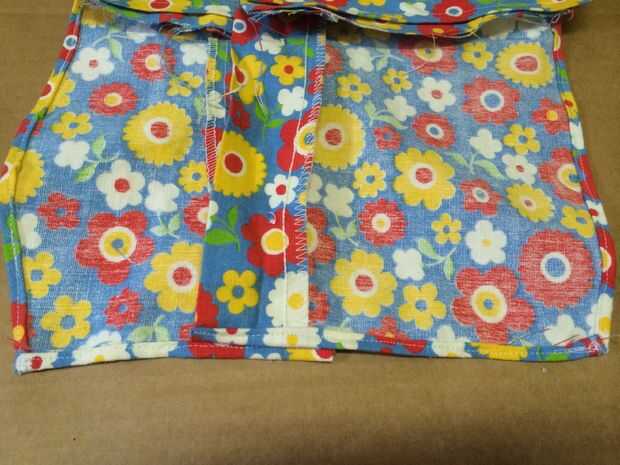 • Doble vuelta en el borde superior del babero. Esto puede hacer un pequeño doblez o más amplia si el babero es demasiado largo después de probar.