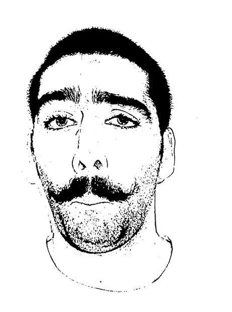 Yo tenía mi amigo tome unas cuantas fotos y entonces asegúrese de elegir el más vergonzoso. Utilicé la herramienta "trace" en Adobe Illustrator convertir la imagen en una foto blanco y negro más básica en el patrón. También puede usar el filtro de "sello" en photoshop. Por esta razón es bueno tener una foto bien iluminada sobre un fondo claro para que sea más fácil ver lo que está haciendo en el siguiente paso.