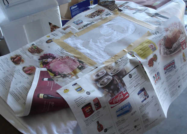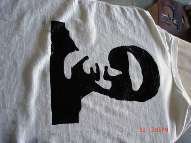 Actualización: Terminé colocando en una camiseta. Hojas de acetato (transparencias sobre la cabeza) funcionan bien para plantillas reutilizables, así que impreso en uno de ellos y recortar las imágenes con las tijeras y voila! Secado de lo que hablo.