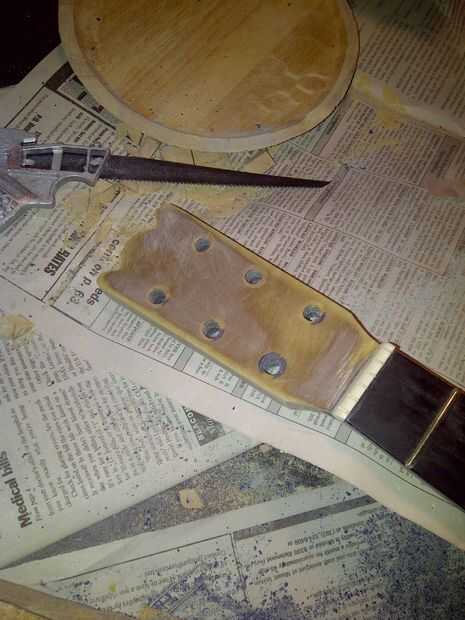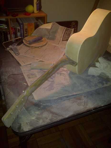 tuve esta vieja guitarra y decidió convertirla en una guitarra del resonador eléctrico... Estoy jubilado en Costa Rica y mis herramientas y recursos son limitados, por lo que es más trabajo con lo que tiene... El cono es un pan de torta angel food...