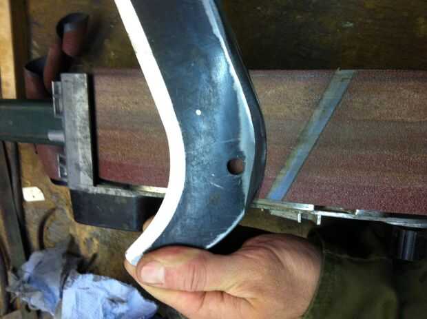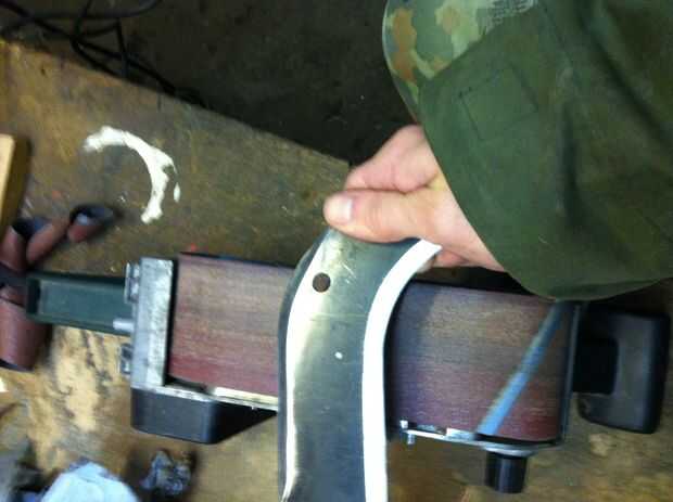 Luego vas a moler a un borde de corte utilizando un beltgrinder.
