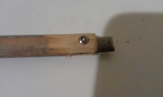 Ahora necesitará gradualmente su pedazo de madera más delgado al final con el cuchillo para que el tornillo llega a ambos lados.