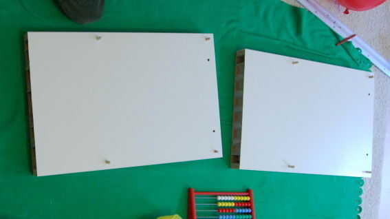 Lo bueno es que todos los agujeros ya están donde deben estar para no taladrar es necesario. Ahora volver a colocar los tacos, montar el aparador como en la foto y atornille juntos.