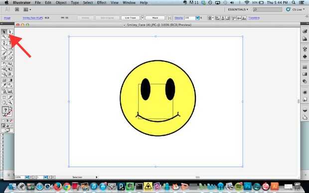 Haga clic en la herramienta de selección (la flecha negra) en la parte superior de la barra de herramientas izquierda y haga clic en la imagen para seleccionarla. Usted sabe que está seleccionado cuando hay un cuadro azul alrededor de su imagen.