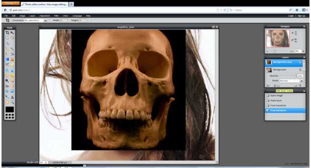 9. ahora aumentar otra vez el 100 de control deslizante de opacidad para que devuelve la imagen del cráneo de transparente. 10. click ahora en la opción de máscara de capa agregar desde el cuadro de capas (sugerencia parece parada de símbolo). 11. la imagen del cráneo ahora obtiene escondida dentro de la chica de imagen.