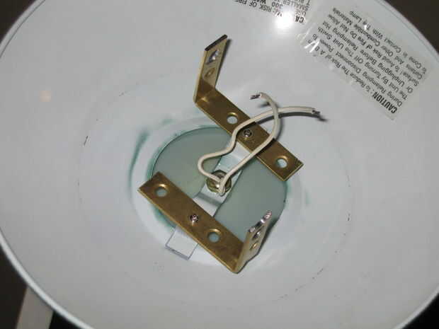 La posición de la lámpara en el recipiente de aproximadamente una pulgada también baja. Y aproximadamente una pulgada de los soportes que estaban para arriba. Bajar la lámpara implicó taladrar un nuevo agujero en el soporte original.