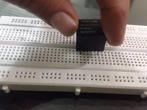 En primer lugar, coloque el relé en un protoboard, luego conectar los 2 cables del bulbo de la lámpara a un lado del relé. Después de completar este paso Conecte los cables a la LinkitONE y la placa.