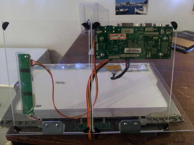 Después has enroscado que ultima en seguir adelante y poner todo en su parte frontal (utilice los cojines desde antes para protegerlo!) y finalmente arrancar esa última parte de la tapa de la parte inferior de la base. Si atornilla en el tablero de regulador en la parte superior, sacar la tapa lentamente, para que se baje todo, incluso debajo de los tornillos.