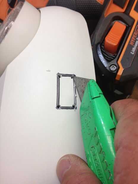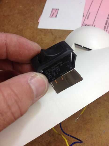 a continuación usted tendrá que cortar un agujero para el interruptor. El interruptor que estoy usando es un simple interruptor de palanca que tiene 2 dientes en la parte inferior. Mida el interruptor y marque en la unidad con un lápiz o pluma. Cortar con un cuchillo o mejor aún una herramienta Dremel. Una Dremel será mucho más rápida. Instalar el interruptor en el agujero.