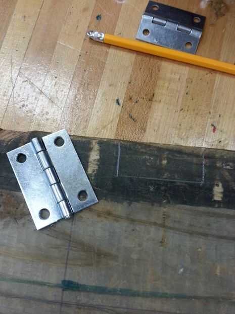 Mantenga su madera en el lugar tomar sus soportes y encontrar donde pueden cubrir al ras con la madera y la maleta. Con mi maleta, era básicamente en el centro de la madera donde encajan. Marca donde van los soportes, luego atornillarlos en la madera.