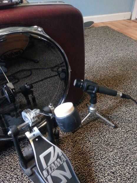 Puede mic este tambor para arriba con casi cualquier micrófono que desee. Estoy usando un Shure SM57 para un sonido más fuerte y directo.
