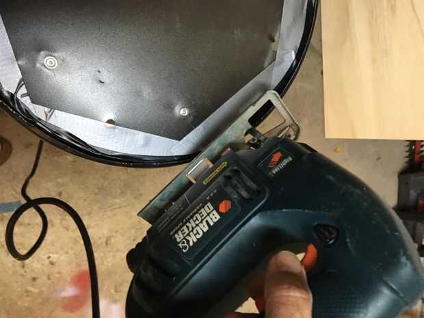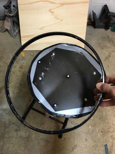 Usted tiene que encontrar a algún tipo de anillo que se ajusta a la cabeza del tambor. Puesto que mi cabeza del tambor era 13 pulgadas, fue un poco difícil encontrar algo en ese tamaño. 12 pulgadas es muy fácil porque la parte superior de un galón 5 cubo de Home Depot es exactamente 12 pulgadas. He probado tomando una tira fina de madera contrachapada y doblar en forma pero no funcionó. Después buscando por ahí encontré que un taburete guardo en mi sótano tenía un anillo alrededor de él que fue exactamente de 13 pulgadas. Yo trabaje con ella el anillo del asiento y salió perfectamente.