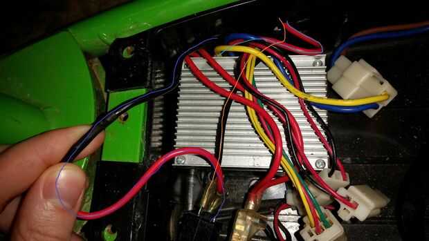 El cable rojo de la batería todavía va a ir directamente a la batería nueva. El cable negro del controlador va a volver a dirigir hasta el fusible, y desde el fusible, volvemos a la batería. En mi caso, la forma más fácil de pasar a través del fusible era que el alambre del fusible y "-" (negro) hilo que va en el controlador directamente soldado juntas. Esta izquierda con 2 olvídese de cables que había cortado ahora necesaria para volver a ser terminados con los conectores anderson.