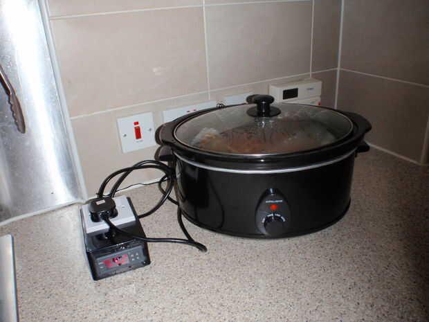 2. Enchufe su olla de cocción lenta en el cuadro.