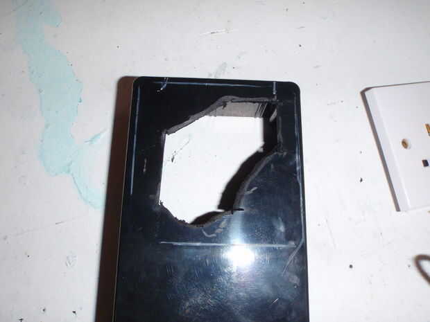 - Corte el área requerida para que la pandilla va a quedar al ras con la caja, asegurándose que los orificios de montaje no conseguir corte.