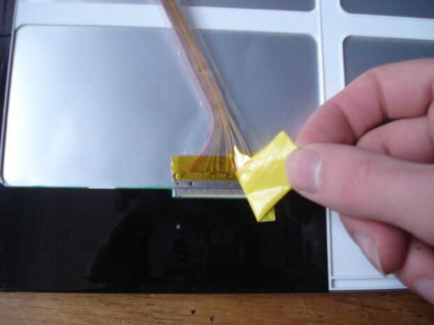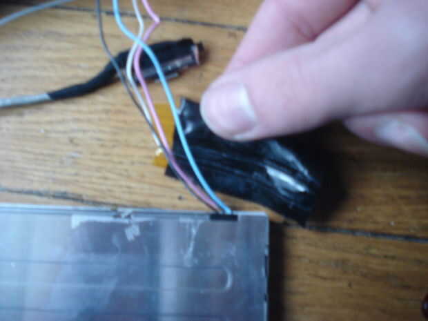 Ver foto 1. ¡ Primero desenchufe los cables de color rosados y azules (Foto 2), a continuación, el gran uno pegado una pegatina amarilla (fotos 3 y 4). No era gran cosa, realmente.