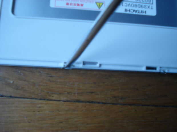 Ahora mira el borde del marco. Hay algunas muescas en el plástico, y pequeñas piezas de metal están doblados en ellos. Mantienen el marco y la pantalla Junta (Foto 5). Utilice el destornillador de punta plana para desplegarlos (foto 6). Son todo el marco, así que atención a cada uno de ellos. Trate de no romperlas, trabajar suavemente.