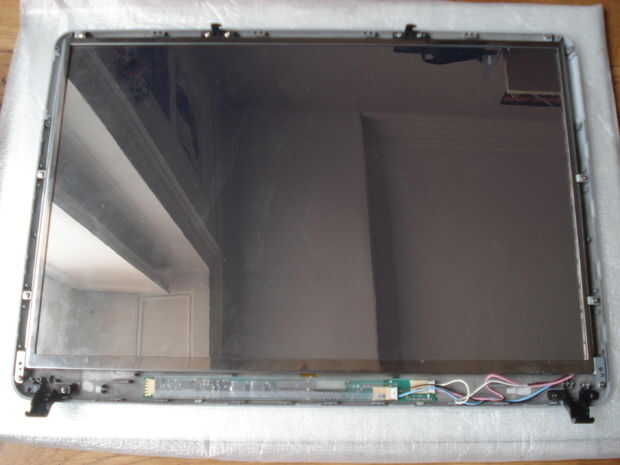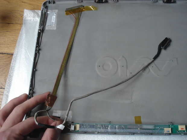OK, ahora Desconecte el alambre grande - datos-(Foto 2) y lo hilos finos - alim - (Foto 3). Para eso, sólo la pegatina y desatornillar la pieza de metal. Luego destornille las "patas" de hierro y llevarlos fuera de la pantalla (Foto 5). Aquí es su chasis limpio; Vuelva a colocar las barras en los lados (foto 6) y luego la pantalla (foto 7).