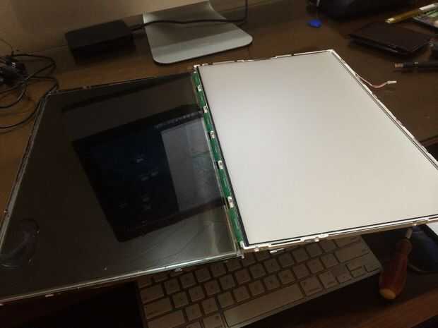 La luz de fondo se hace de una lámpara CCFL en éste o tira de LED, hoja reflexiva, un vidrio guía, algunas películas de fresnel y películas de difusor. Tienen un orden muy específico, la orientación y el lado. Sólo sigue como es, o será muy difícil que luego de la manera correcta más adelante.