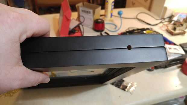 Quería una manera de desmontar fácilmente las placas de soporte, así que decidí utilizar Velcro. Que une las tiras a cada mesa y les pegó en lugar así que quedaría en su lugar. Después de la placa principal de control de LCD en su lugar, decidí hacer un agujero en el lado entre los dos cuadros para permitir que el cable de alimentación.