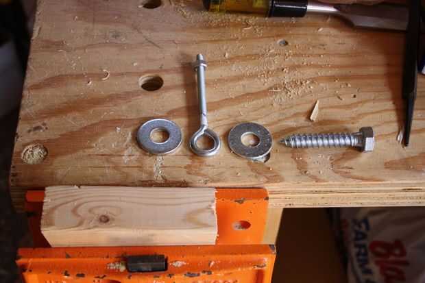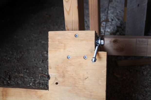 A continuación, hacer y fijar el conjunto inferior de la unidad para el pedal. Como se muestra en los cuadros 2 y 3, se trata de un simple montaje con un tornillo hexagonal roscado con 2 arandelas y una armella para un coche. No taladre el orificio piloto demasiado grande. Utilice una llave para apretar este conjunto en un bloque de chatarra 2 x 4.