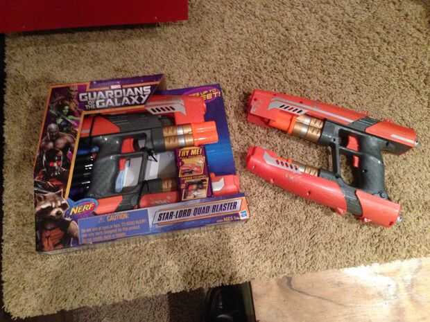 Nerf en libertad estos derecho blasters después salieron guardianes de la galaxia, y estaban realmente una aproximación bastante buena de cómo la pistola se ve en la película. Sólo necesita un poco trabajan para buscar realmente precisa.