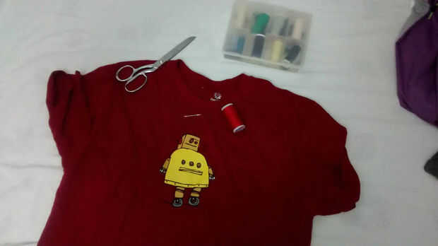 Reciclar una playera que de si quieres ya no utiliza algún hombre conozcas, la de puedes decirle te regale y transformarla para te sea útil.