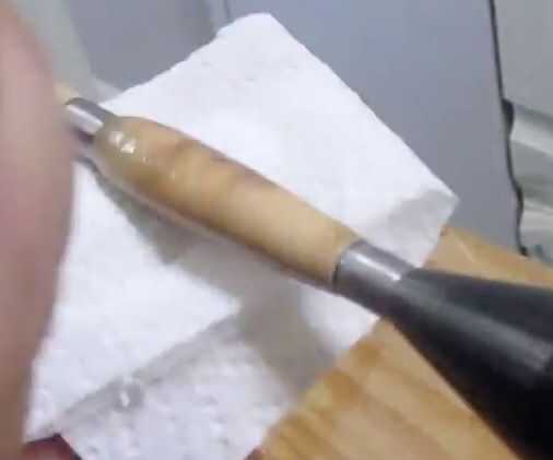 Sé que todo el mundo tiene su propio proceso para aplicar un acabado de CA y no tiene ningún derecho a decir que mi técnica es el mejor, pero creo que mi método de aplicación de CA es una muy buena y siempre ha sido confiable y me dado buenos resultados. Arroja a chorros una pequeña cantidad de CA en un trozo de toalla de papel y rápidamente se limpió en la madera (estaba girando a alrededor de 800 RPM). No quedarse con la CA porque muy fácilmente podría secar y luego tienes un pedazo de toalla de papel pegado a su pluma... No estoy seguro, pero creo que no venden a bien en una feria de artesanía. Me golpeó con un acelerador (activador) y esperé unos 43 segundos. No colocar todas sus capas a la vez porque va a ser suave y no seque correctamente. Si usa una CA fina cada capa se seque casi al instante pero tendrás que dar unas 8 capas para obtener un buen acabado duradero. Sin embargo, estoy usando un medio CA, así que sólo necesito de 3 o 4 capas, pero tarda más tiempo en secarse incluso con un acelerador. Así que hice el mismo proceso de chorros de CA en la toalla de papel, limpiar en y rociar con el acelerador. Siempre limpie su CA de la mitad de los espacios en blanco de la pluma. Esto hará que no se goma tanto en los bujes. También, limpiar alguna cera de abejas en los bujes. Esto evitará que se pegue a la madera. Entonces lijar todo con grano 800, 400 y 600. Apague el torno después de grano 400 y mira a ver si hay alguna mancha brillante. Si es así, continúe a lijar con grano 400. Estamos tratando de quitar las colinas y valles que sobraron el CA y hacer todo incluso.