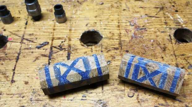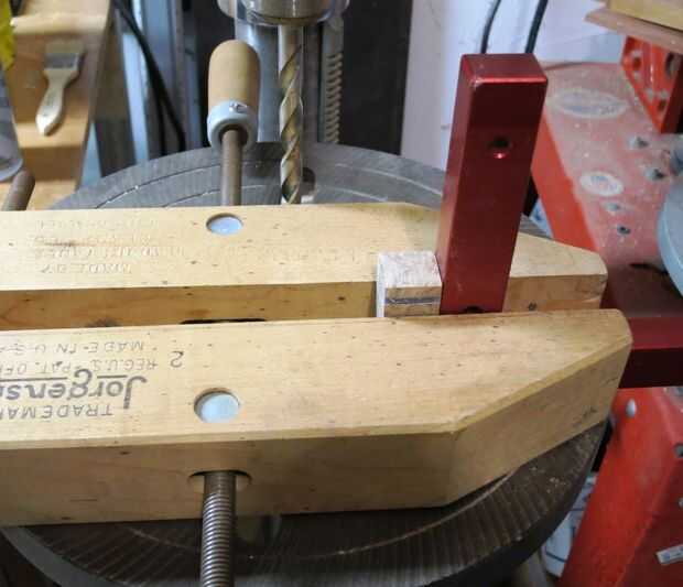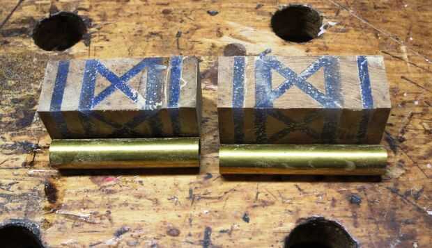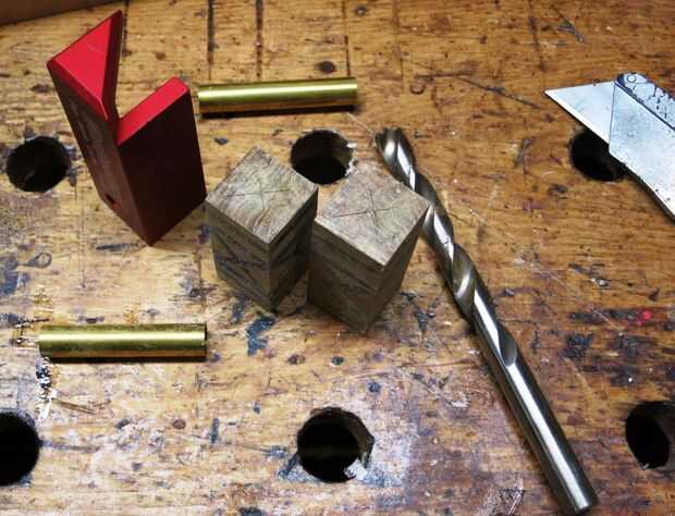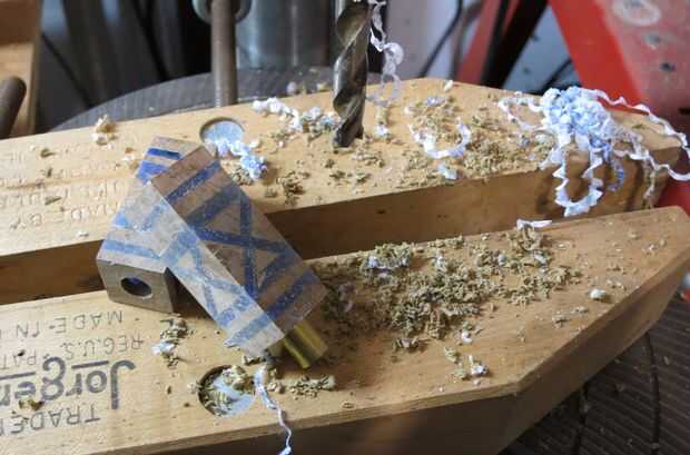 Mover al taladro y marque el centro de cada espacio en blanco. Mantener un pequeño buscador de centro alrededor de esto, pero si tienes el espacio en blanco abajo una regla funcionará igual de bien. Para asegurar el espacio en blanco mientras que perfora, me gusta sujetar en un tornillo de mano grande para la estabilidad y me da espacio para agarrar a. Mantenga una plaza contra el espacio en blanco como usted apriete hacia abajo, asegurándose de que las esquinas de la estancia de la pinza en contacto con la mesa. Ir lentamente con el taladro y vuelve a salir de cada pocos segundos para eliminar cualquier residuo. Una vez del otro lado, compruebe que fue a través del recto y los tubos de latón en lugar del pegamento.