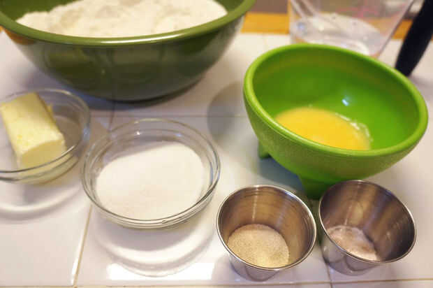 Medir cada ingrediente y los colocó en recipientes separados la primera vez para asegurarse de les mide correctamente y luego los líquidos a la máquina de pan; seguido de los ingredientes secos. Es mejor colocar la harina en una taza de medir que al echar la taza de medir la harina. Después de probar la receta y hacer los ajustes necesarios, que recomiendo hacer un lote doble a la vez como he mencionado anteriormente.