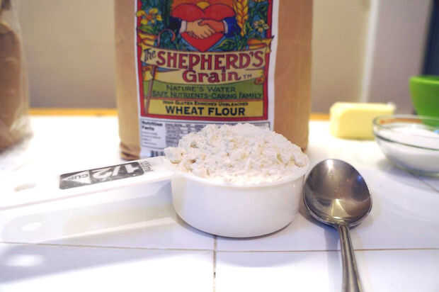 1/2 taza de gluten alta de grano de Sheppard enriquecida harina de trigo sin blanquear o harina equivalente