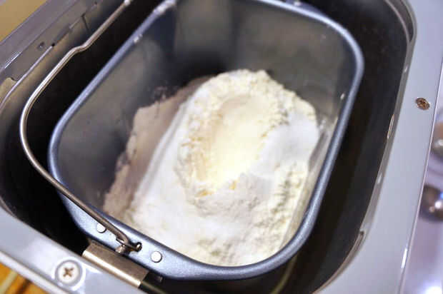 Medir previamente las diferentes harinas y mezclarlas en un recipiente antes de añadir la mezcla de harina a la máquina de pan para evitar errores. La razón que capas la harina lo hice y hace un pozo era evitar que la sal toque la levadura antes de que los ingredientes se mezclan. Vagamente recuerdo leer en algún lugar que sal se diluya la acción de la levadura. Pudo haber sido en los fabricantes de pan Manuel.