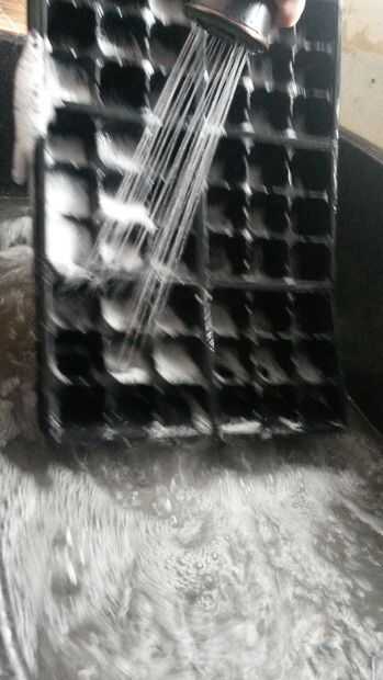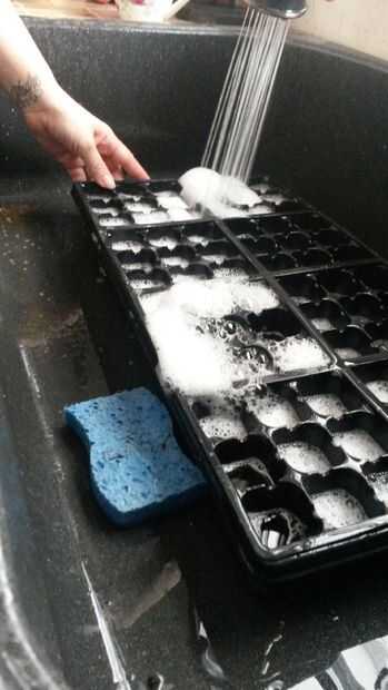 Lo primero que hago es sacar mis jardineras. Debo esterilizar y limpiar la habitación de crecer. Es muy importante limpiar todos los materiales que se utilizarán en la sala de crecer cada año. Usar agua caliente y jabón para limpiar las macetas. Es importante limpiar todo para eliminar las enfermedades y otras bacterias que podrían dañar las plantas.