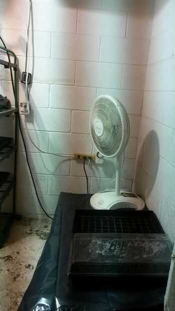 7. en esta imagen muestra el blanco circulación ventilador que uso para empujar el aire alrededor de la sala de crecer y las plantas.